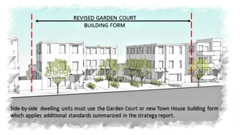 An example of the so-called garden-court form that will no longer be allowed under the new slot-homes code.