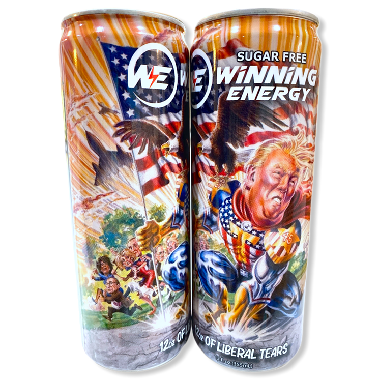 Shea runs a drink company called Winning Energy. Cans of the beverages feature a cartoon superhero image of Donald Trump, and the company’s website claims that the contents are made from “liberal tears, creating the perfect energy drinks for winners.”