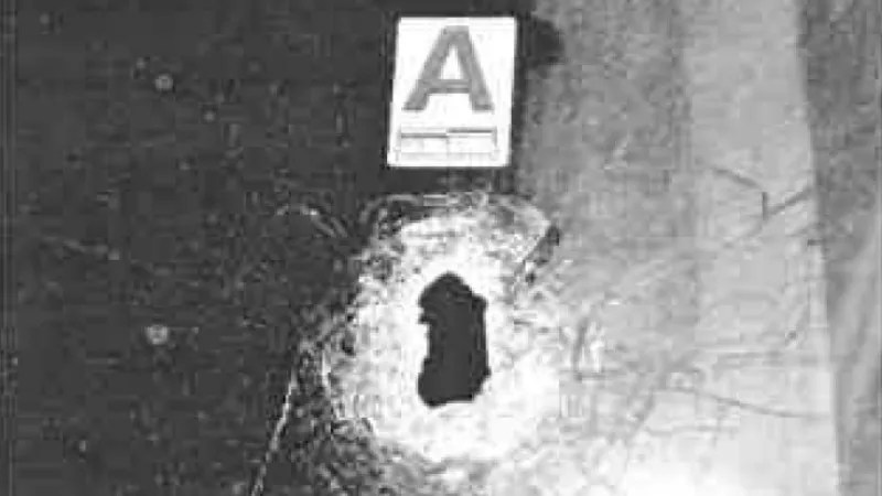 This photo shows a bullet hole in the windshield of the vehicle driven by Sandra Pacheco.