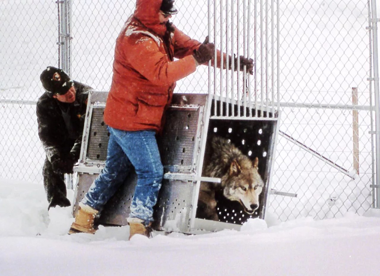 While Edward fought for wolf reintroduction in Colorado, wild wolves were already returning to other parts of the West. In 1986, wolves from Canada moved into northern Montana. The next year, the U.S. Fish and Wildlife Service (FWS) developed a plan to foster the natural recovery of wolves in Montana, which led to their reintroduction in Idaho, too. In 1995, 29 gray wolves were captured in Alberta, Canada; fifteen were released in central Idaho and fourteen in Yellowstone.