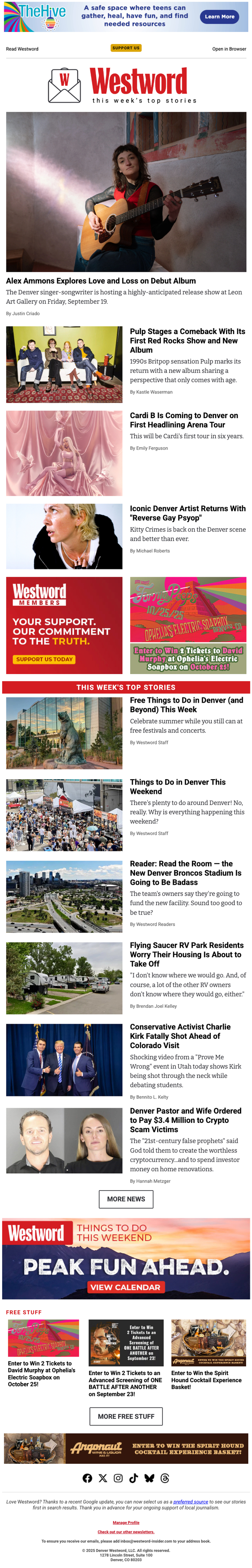 Get the latest news, music and arts stories — along with the best things to do this week — so you’ll never miss Westword’s biggest stories. Delivered every Thursday.