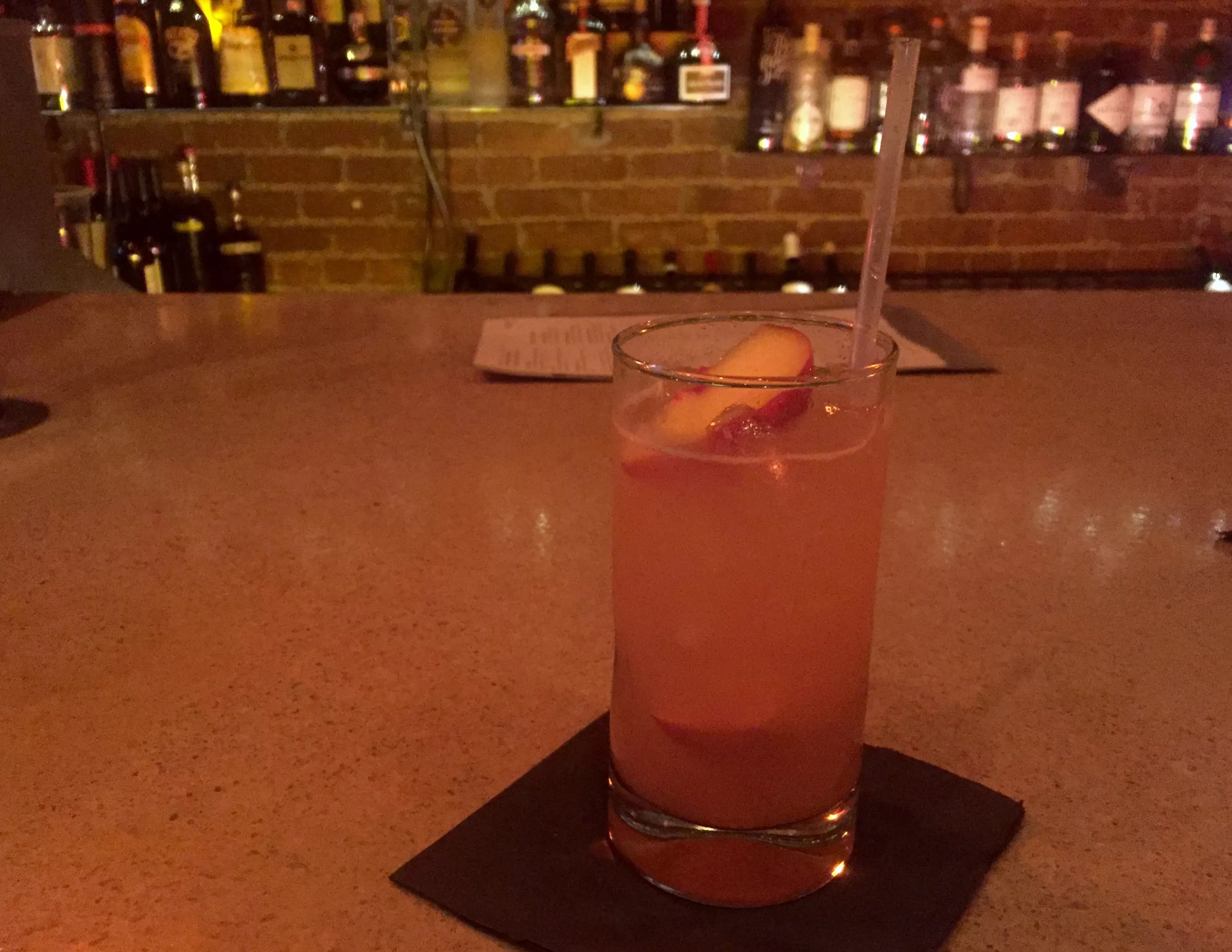 Vesta’s Kentucky Buck is garnished with fresh peach slices
