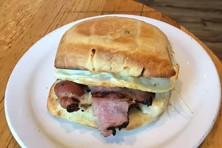 East Coast transplants will appreciate the pork roll breakfast sandwich, made with New Jersey-style pork roll that's only beginning to catch on in Denver. Angelo's version is more like ham steak with eggs and cheese on a buttery bun — not exactly what I was expecting, but a good sandwich nonetheless.