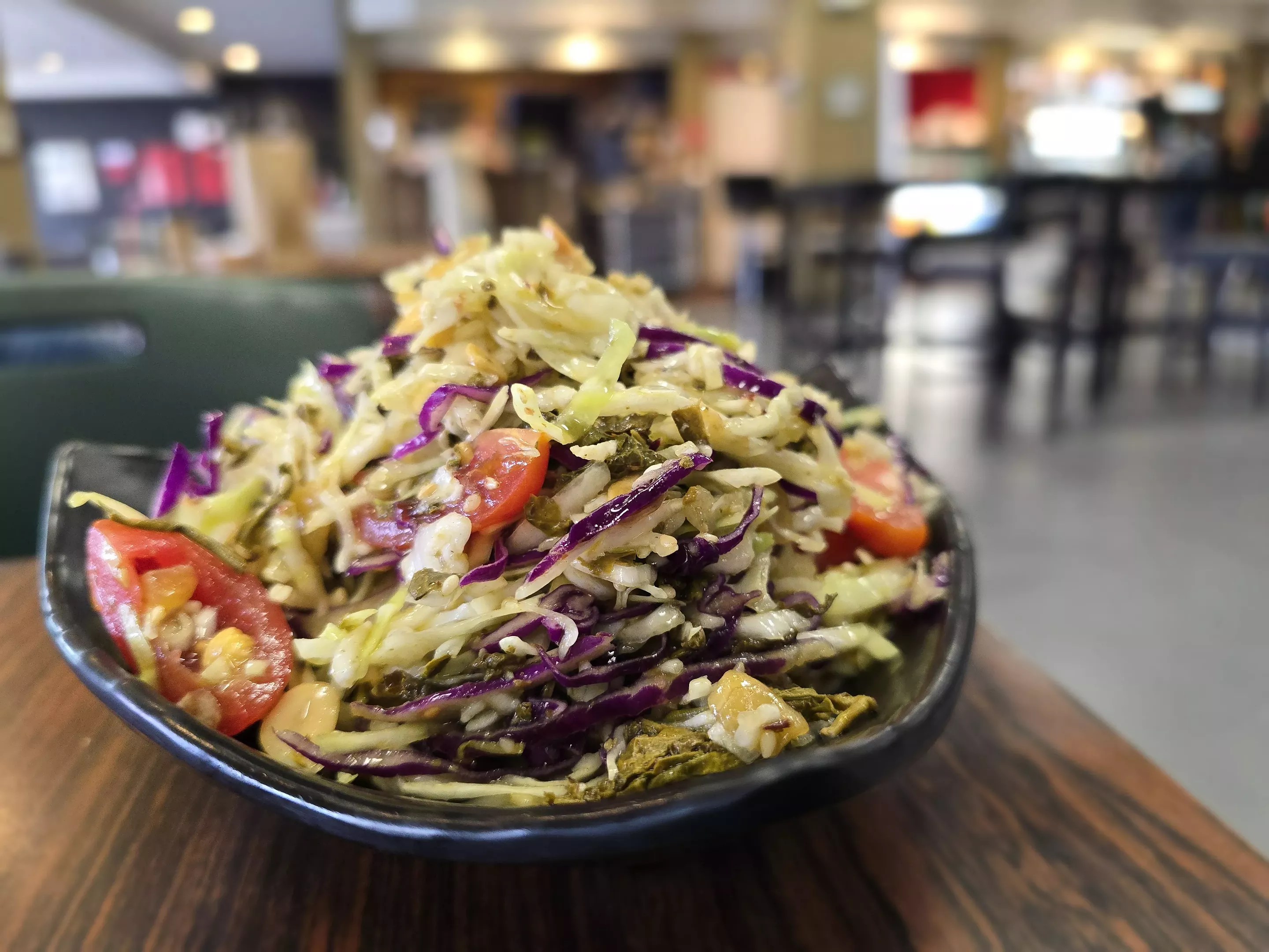 I was happy to wait for the veggie combo served over spongy injera – I’d ordered bites from the other two open stalls to snack on as well. Urban Burma, which is one of our favorite places to eat in Aurora, has been a staple at Mango House since Siri Tan opened the metro area’s first Burmese restaurant in early 2019. One of its staples is the Burmese tea salad, a combination of fermented tea leaves, cabbage, tomatoes, garlic, fried peanuts and crunchy yellow lentils that’s dressed with sesame oil. It’s a light way to start a meal with a satisfying mix of textures.