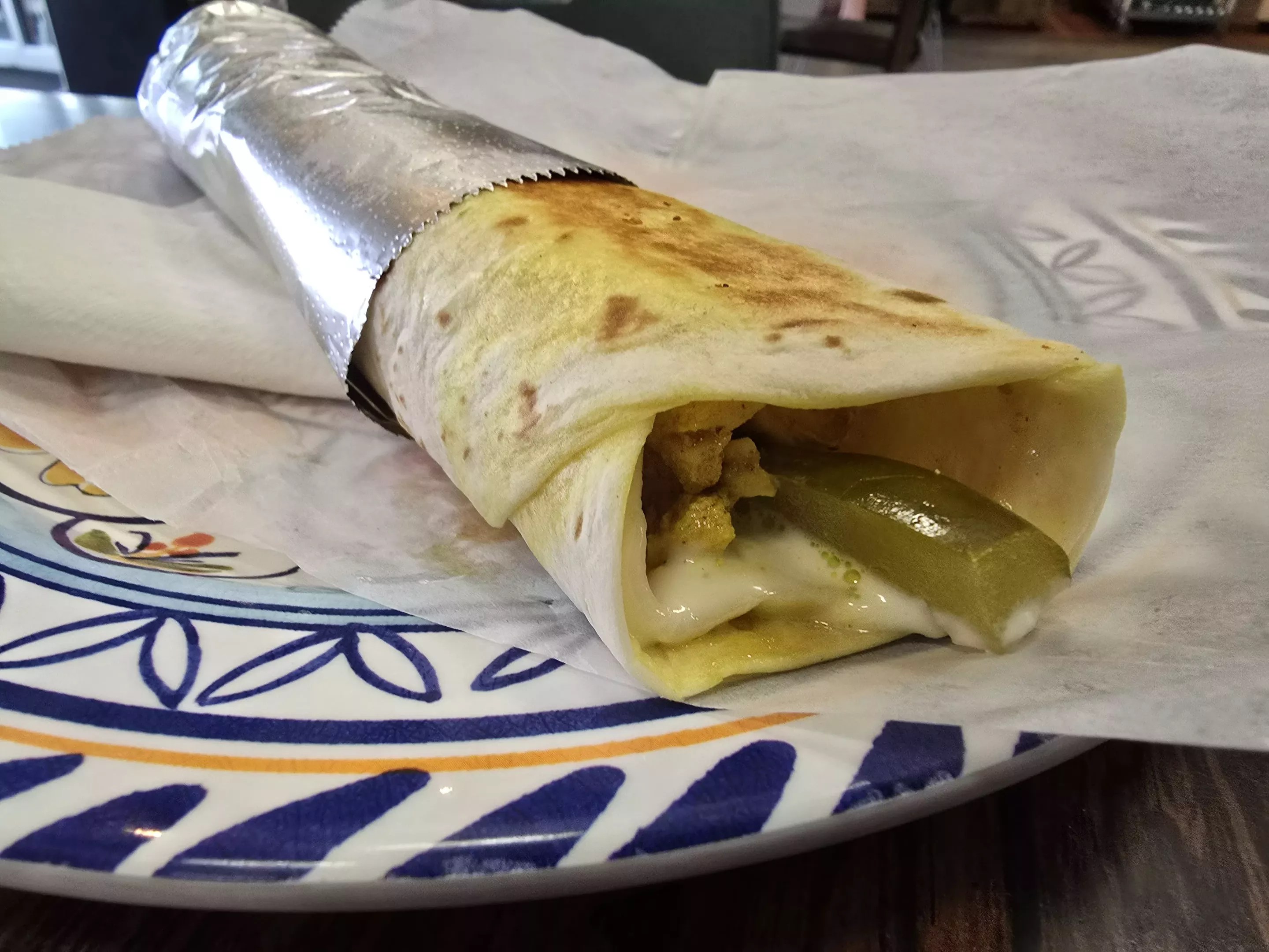 Next, I dug into a chicken shwarma wrap from Jasmine Syrian, which is owned by Mohamad Alnouri, who fled Syria with his family in 2015 and arrived in Denver in 2017. His parents were patients of Dr. P.J. Parmar, the founder of Mango House, and he offered the family the opportunity to open their restaurant in 2018; it was the first stall open inside the community center.