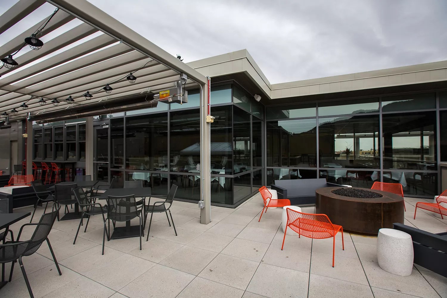 Corrida’s fourth-floor patio offers great views of Boulder and the Flatirons.