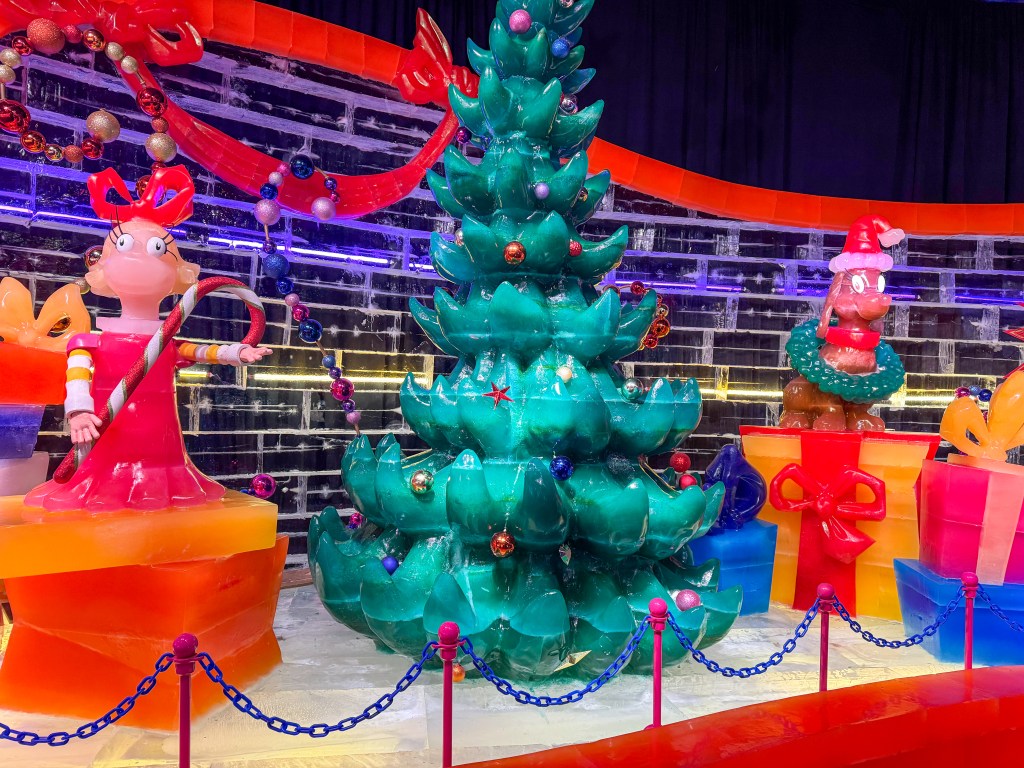 Near the end of the exhibit, you’ll find five LED-lit ice slides that you can ride down. And, as if that weren’t enough of a perfect final showstopper, you can also watch a live ice-carving demonstration as you make your way out.